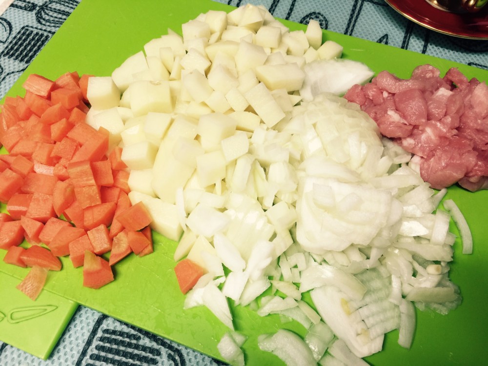 - 감자, 당근, 양파는 생각보다 작게 썰면 좋습니다.