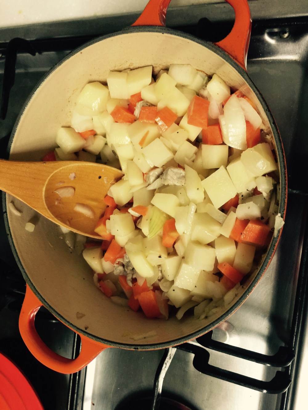 - 순서는 고기 – 양파 – 감자/당근 순서대로 볶으면 되요.