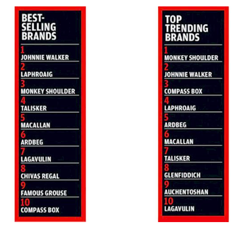 전세계 100여개 유명 Bar를 대상으로 한 서베이에서 몽키 숄더는 ‘가장 트렌디한 위스키’로 이름을 올렸다. 그리고 베스트셀링 리스트에서도 당당히 3위를 차지했다. (근데 2위가 라프로익이라는게…) 그만틈 훌륭한 위스키라는 의미임과 동시에, 저렴한 가격 (~$30), 칵테일로 만들었을 때 느껴지는 부드러움 등이 이유가 아닐까 싶다.