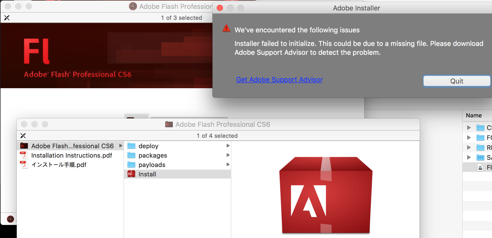 갑자기 Flash를 사용할 일이 생겨 Adobe Animate CC를 설치했지만, ActionScript 버젼이 1.0으로 작성된 파일이라, 급하게 이전 버젼을 설치하였다. Flash Professional CS6를 설치하려고하니 (물론 Adobe에서 다운받은 Trial 버젼이다.) 아래와 같은 에러 메시지가 발생하였다.