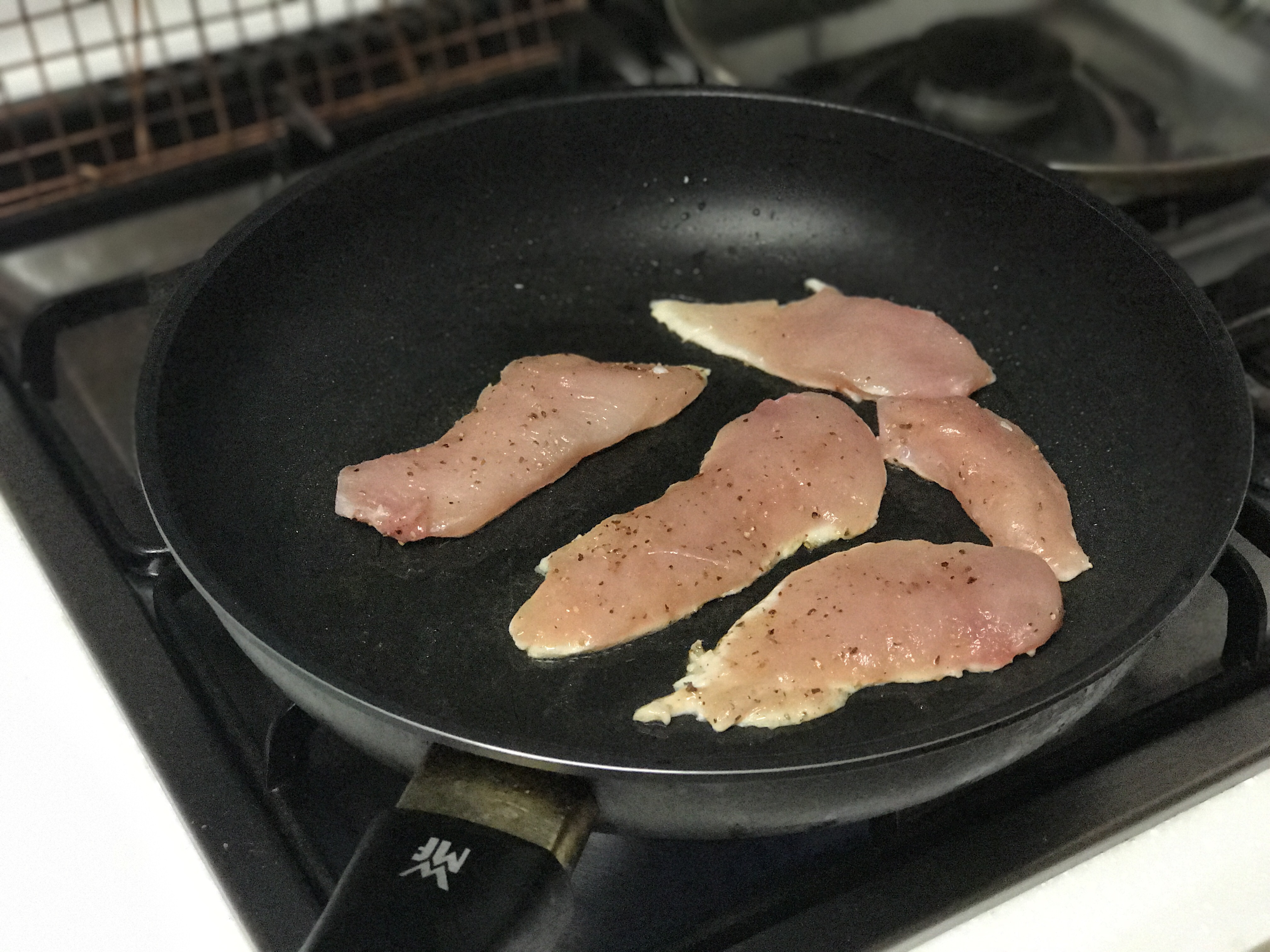 - 닭가슴살을 살짝 굽는다.