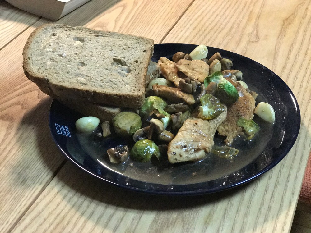 재료 : 닭가슴살, 야채 (다양한 버섯들, 작은양배추), 발사믹, 소금과 후추 약간