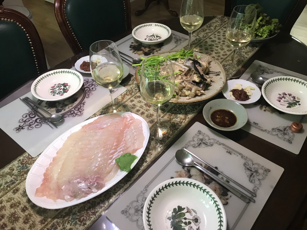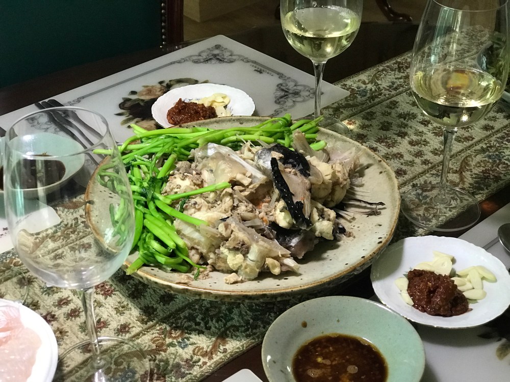 처가에서 요즘 자주 먹는 음식이다. 아귀를 사다가 멸치 다시물에 소금과 약간의 된장을 풀고 끓인다. 살이 부드러워 10분 정도가 적당하다고 한다. 가락 시장이 가까워 마리에 13,000원~15,000원 정도면 괜찮은 아귀를 한 마리 살 수 있다.