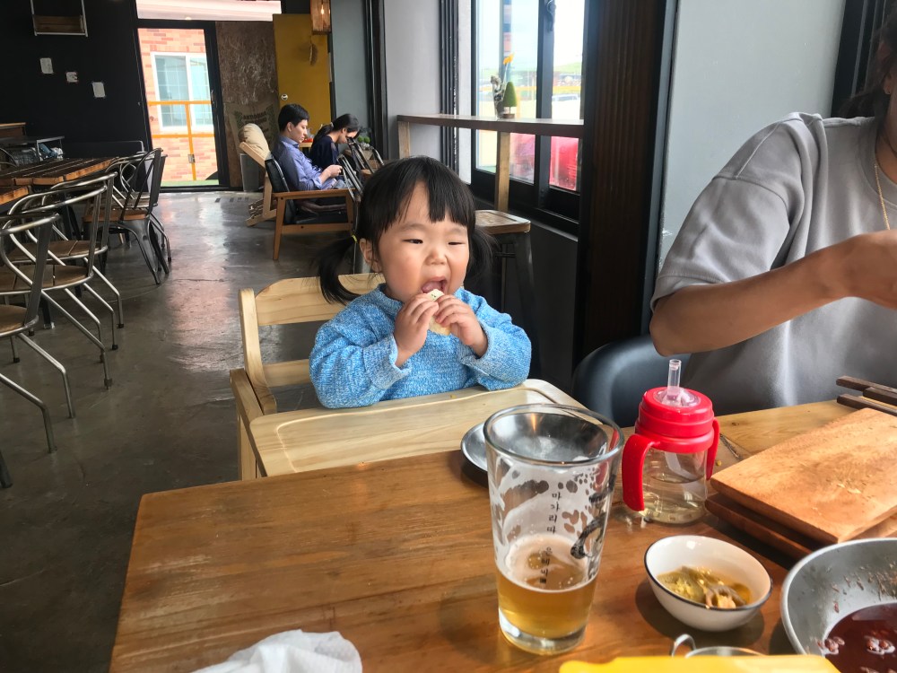 이게 가능한 가장 큰 이유는 아기가 잘 먹기 때문이다. 음식점에 가면, 어른들이 먹는 흰쌀밥과 국(국물), 약간의 밑반찬으로 식사를 할 수 있다. 여기에 식당 반찬 중에 김이나 고기, 생선이 있다면 한끼 식사로 충분하다. 식사를 준비해서 다닐 필요가 없었기 때문에 서울에서 잠깐 외출하는 것과 비슷한 정도의 준비 상태로 제주를 여행할 수 있었다. 다만 아기도 함께 식사해야했기 때문에 너무 허름한 노포는 피하고, 좀 더 현대적인 식당들을 찾았다.